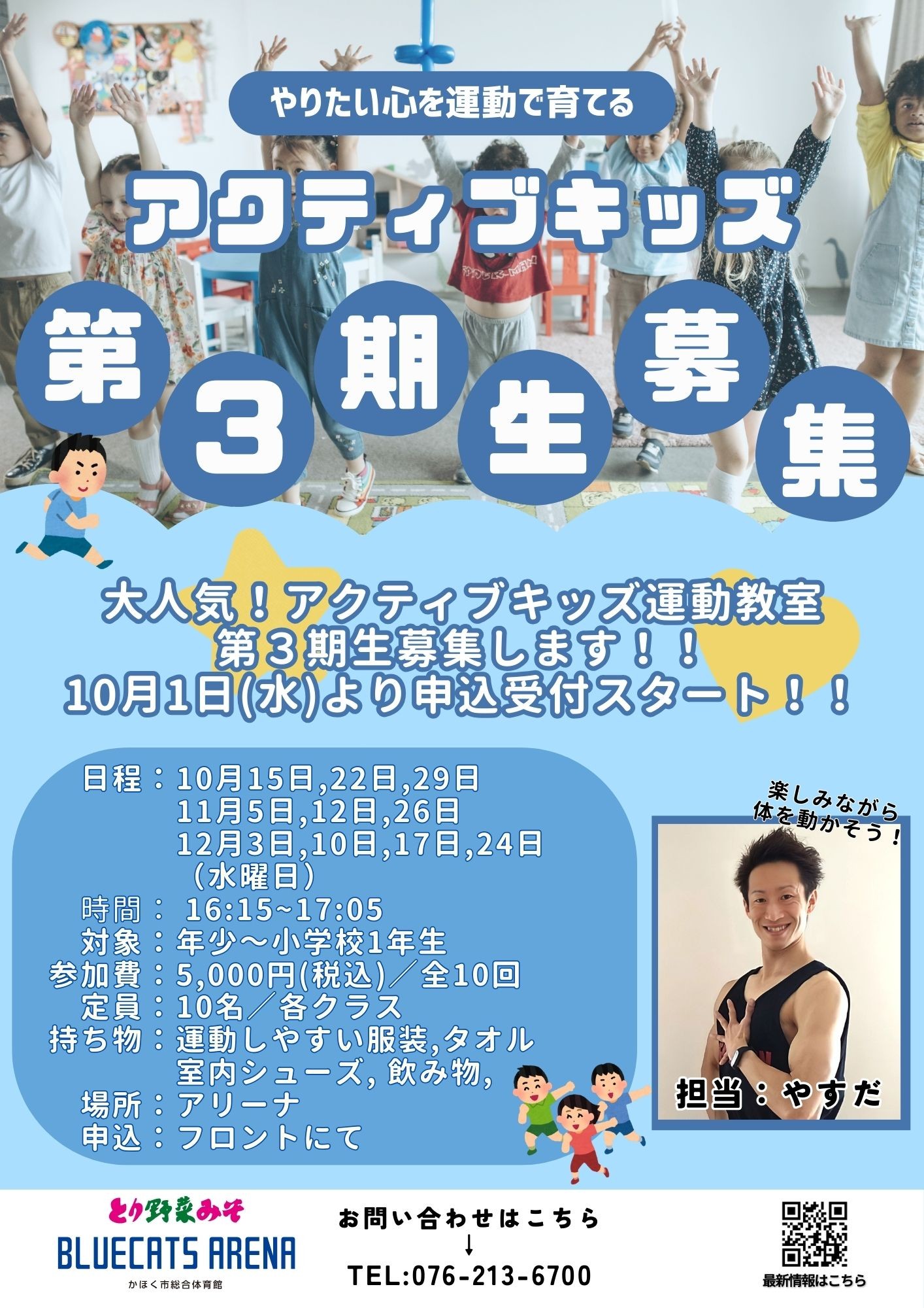 第3期アクティブキッズ運動教室のご案内をさせていただきます。