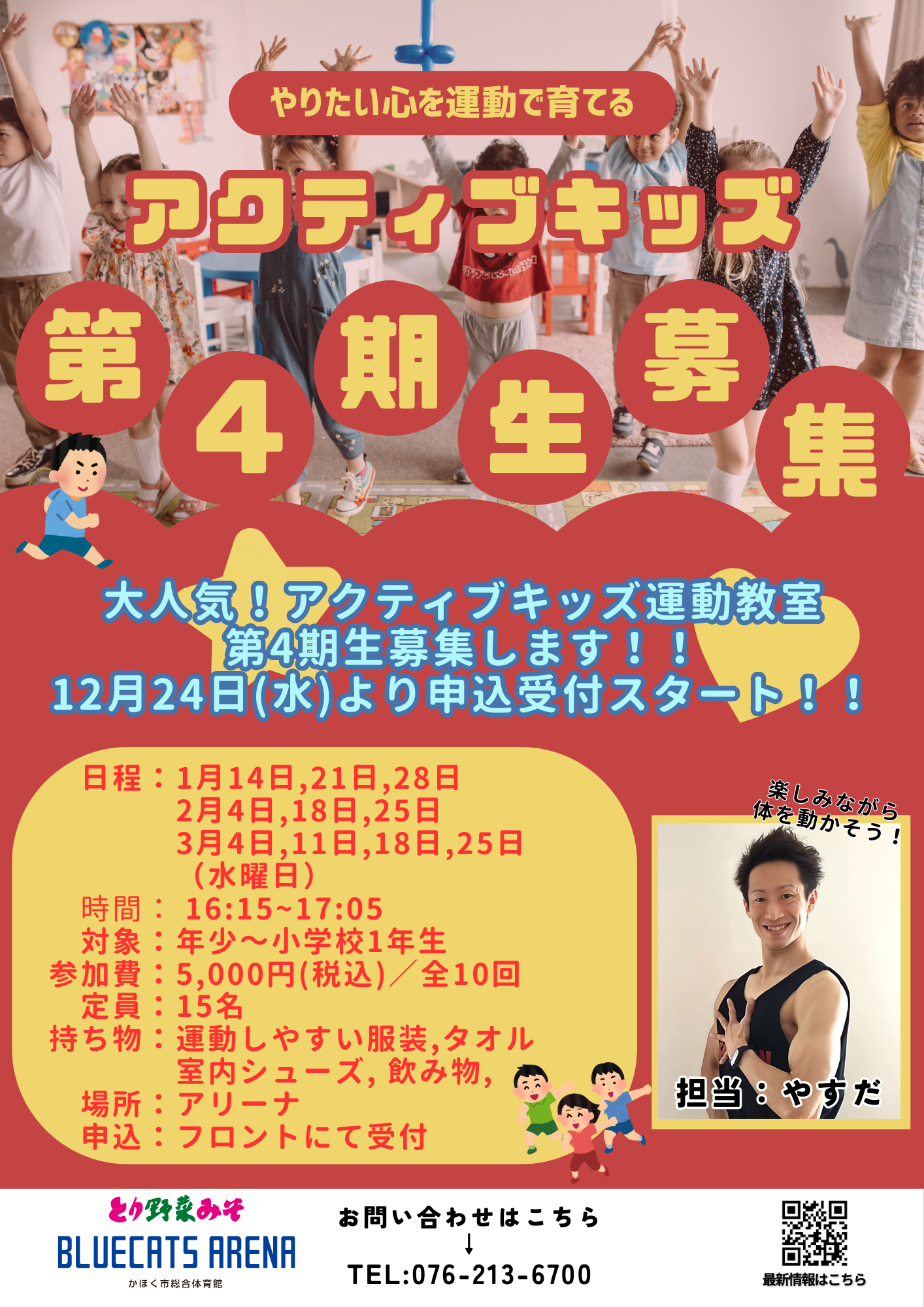 第4期アクティブキッズ運動教室のご案内をさせていただきます。