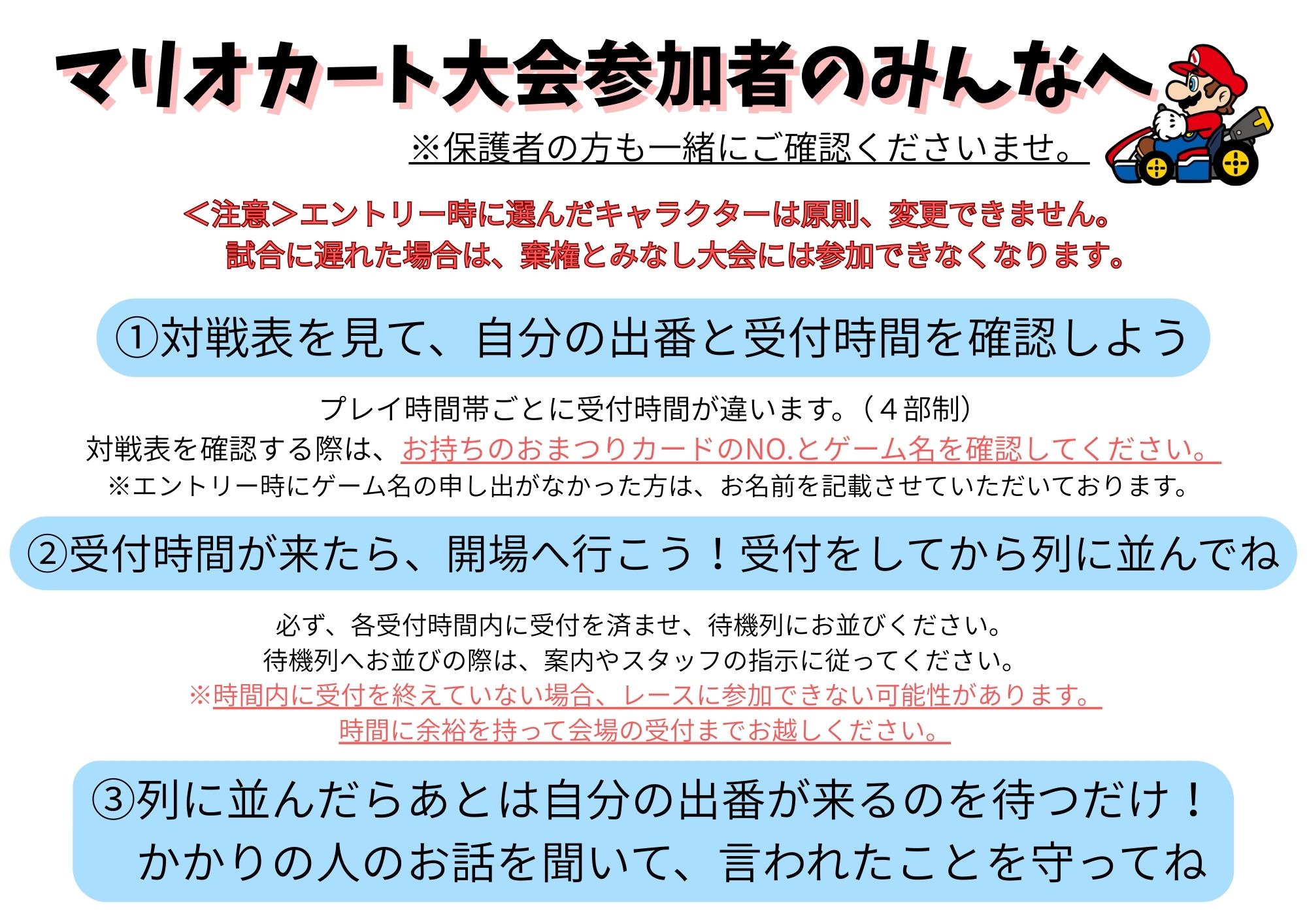 3月15日(日) 2周年感謝祭のマリオカート大会にご参加される皆様へ、大切なお知らせがございます。